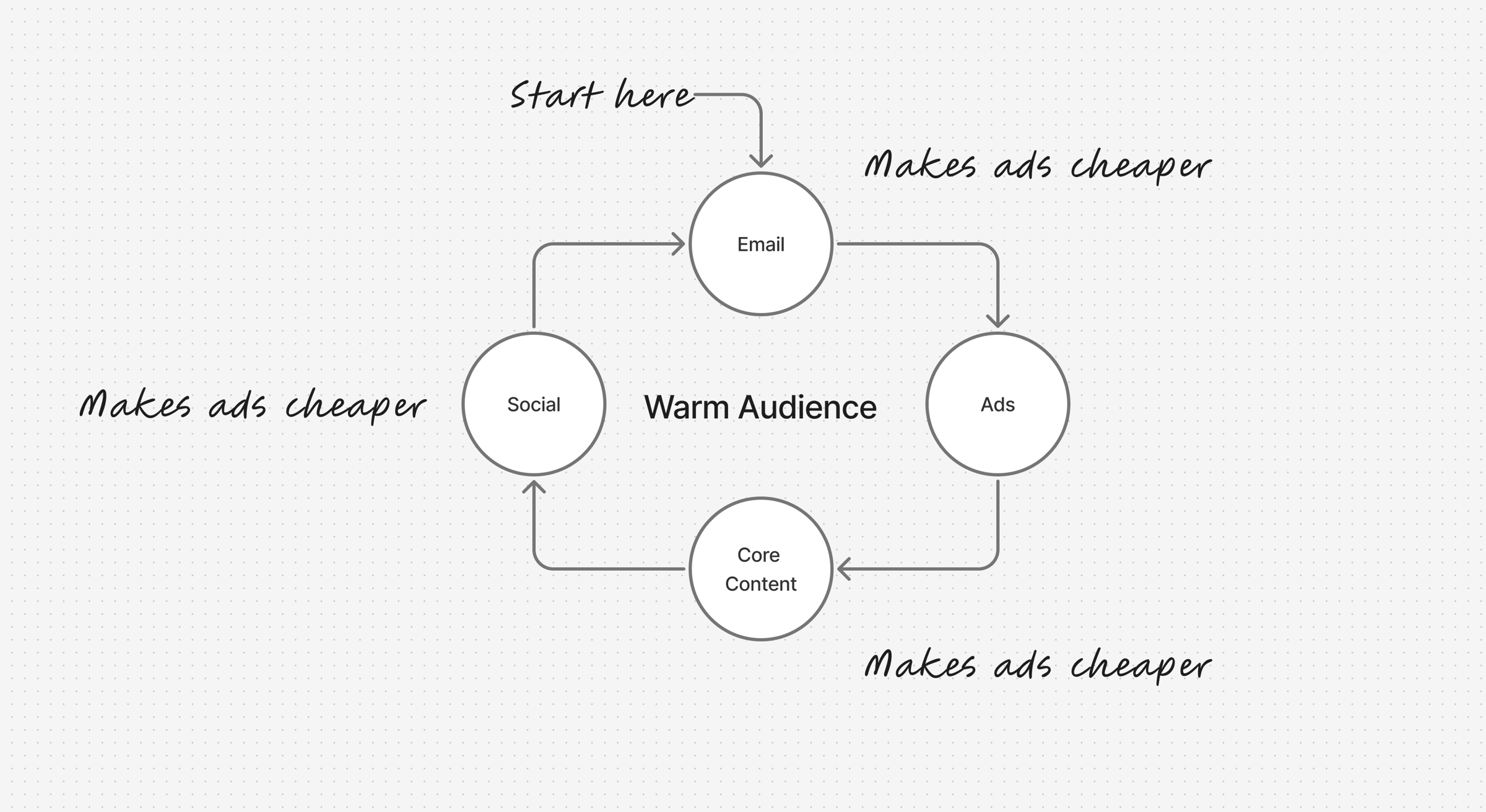 It's a warm audience just swishing around the marketing flywheel, it's not really a funnel because it's not very linear. So don't ask me, The Smartest Dumb Guyâ„¢, to track it all exactly like this.